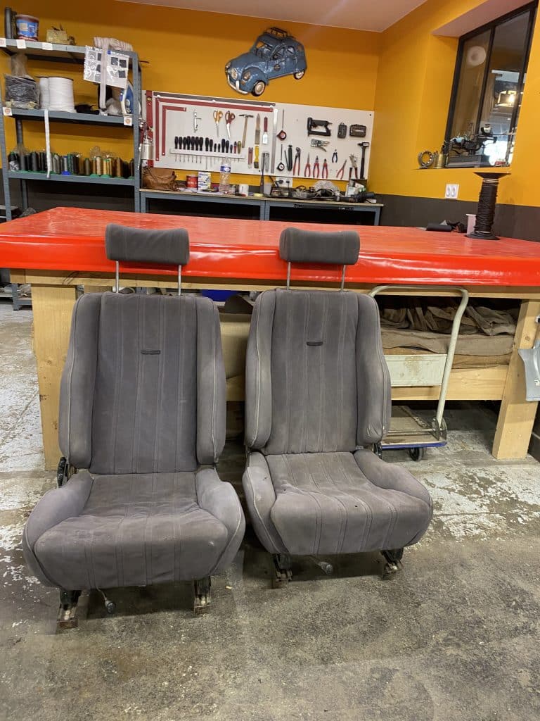 Avant les travaux, la sellerie intérieure était d’origine et le tissu avait subi le temps qui passe.